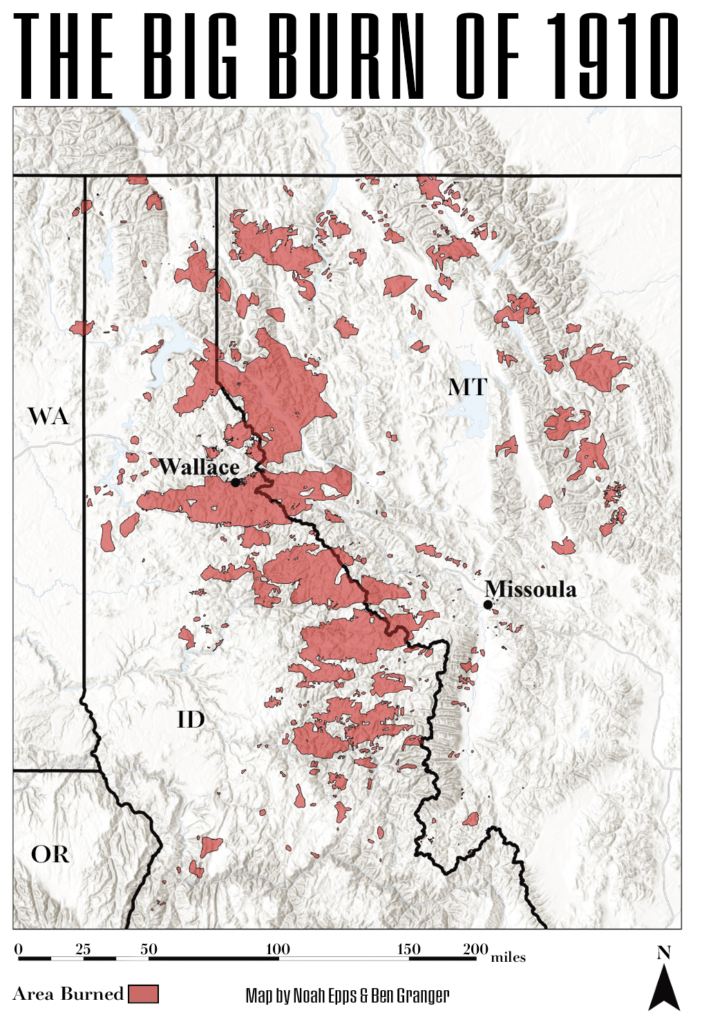 Thunder and lightning shook the small town of Wallace, Idaho, on Tuesday, July 26, 1910. By the end of August, snow was softly falling on the smoldering bones of its valleys.