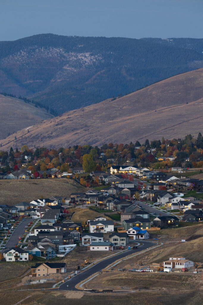 Missoula’s outward expansion can be seen in the development of the Miller Creek neighborhood as new houses are built and roads are extended further into the wildland urban interface on October 21, 2025.